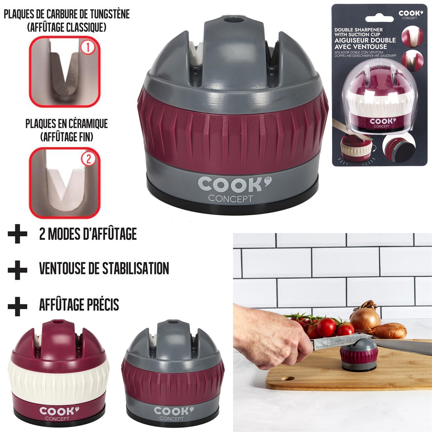 Ascutitor dublu pentru cutite, cu ventuza