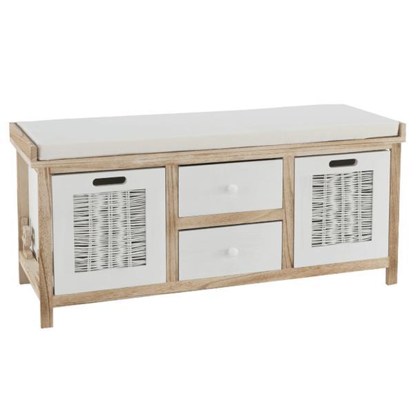 Banca cu 4 sertare din lemn alb natur LINORA 100x36x45 cm