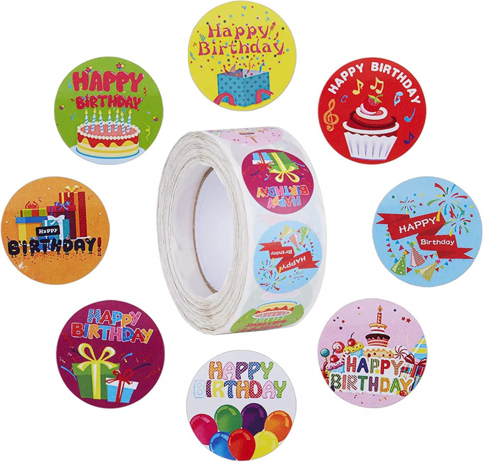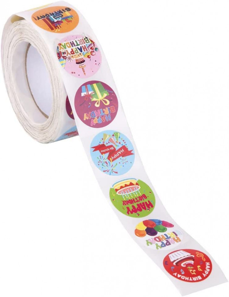 Etichete: Accesorii pentru petreceri, Aniversare, Banda cu 500 autocolante Happy Birthday EGFheal, multicolor, PVC