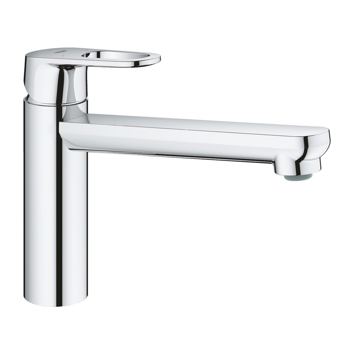 Baterie de bucatarie Grohe Bauflow, monocomanda, tip L, pipa medie, pivotanta, limitator, crom 31688000