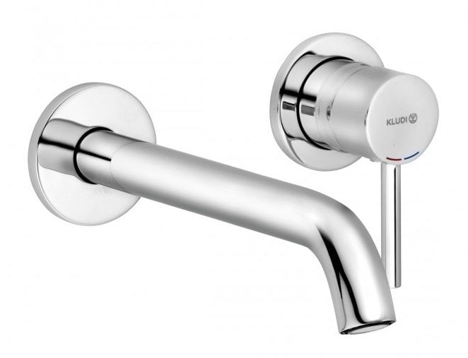 Baterie lavoar Kludi Bozz de perete, 2 treceri, pipa 230mm, fara ventil, montaj incastrat, crom – 382450576