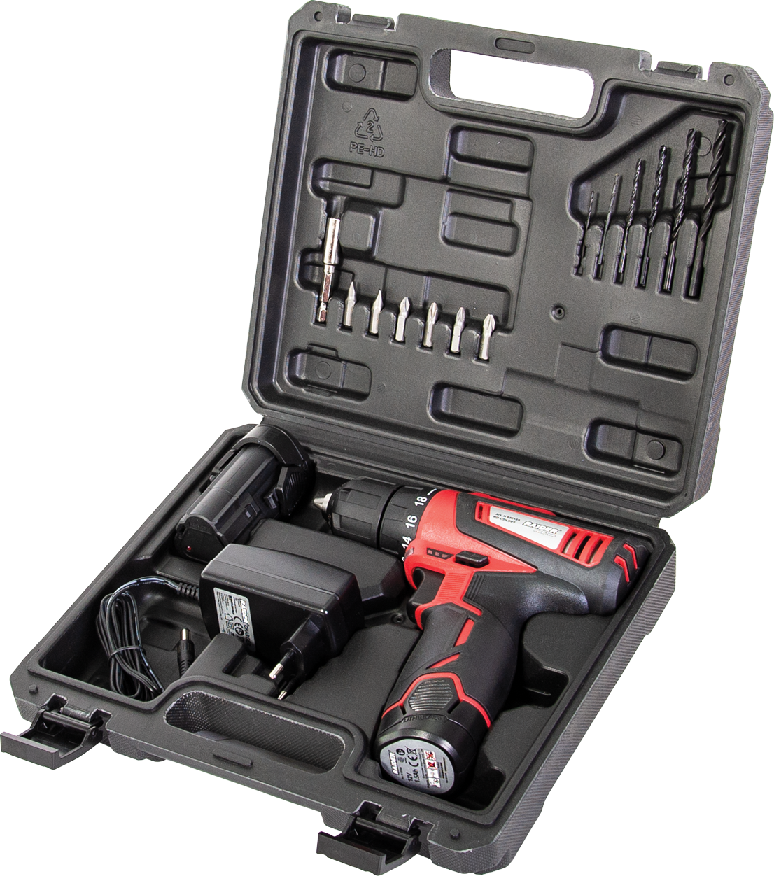 Bormasina acumulator, Raider, RD-CDL09L, 2 vit , Li-ion 12V 1300mAh, 20Nm, 2 acumulatori + accesorii