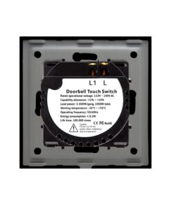 Fisa Tehnica Specificatii: Tip Produs: Buton Sonerie cu Touch, cu Revenire, din Sticla LUXION Durata de viata mecanica: 100.000 de utilizari Tensiune maxima: 240 V Curent maxim: 10 A Putere: 1.000 W Nivel de protectie: IP 45 Dimensiuni: 86 x 86 x 35 mm Materialul panoului: Panou din sticla de cristal Mediu de functionare: -20 ~ 70 grade Celsius; mai putin de 95% RH Prezentare Conectarea la releu pas cu pas