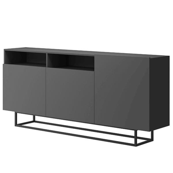 Comoda, 3 usi, din mdf grafit si picioare metal negru, Spring, 180x37x80 cm – Produs din sectiunea Home & Deco, categoria Mobilier, subcategoria Comode la pretul de 1999 Lei; Producator: Decorer
