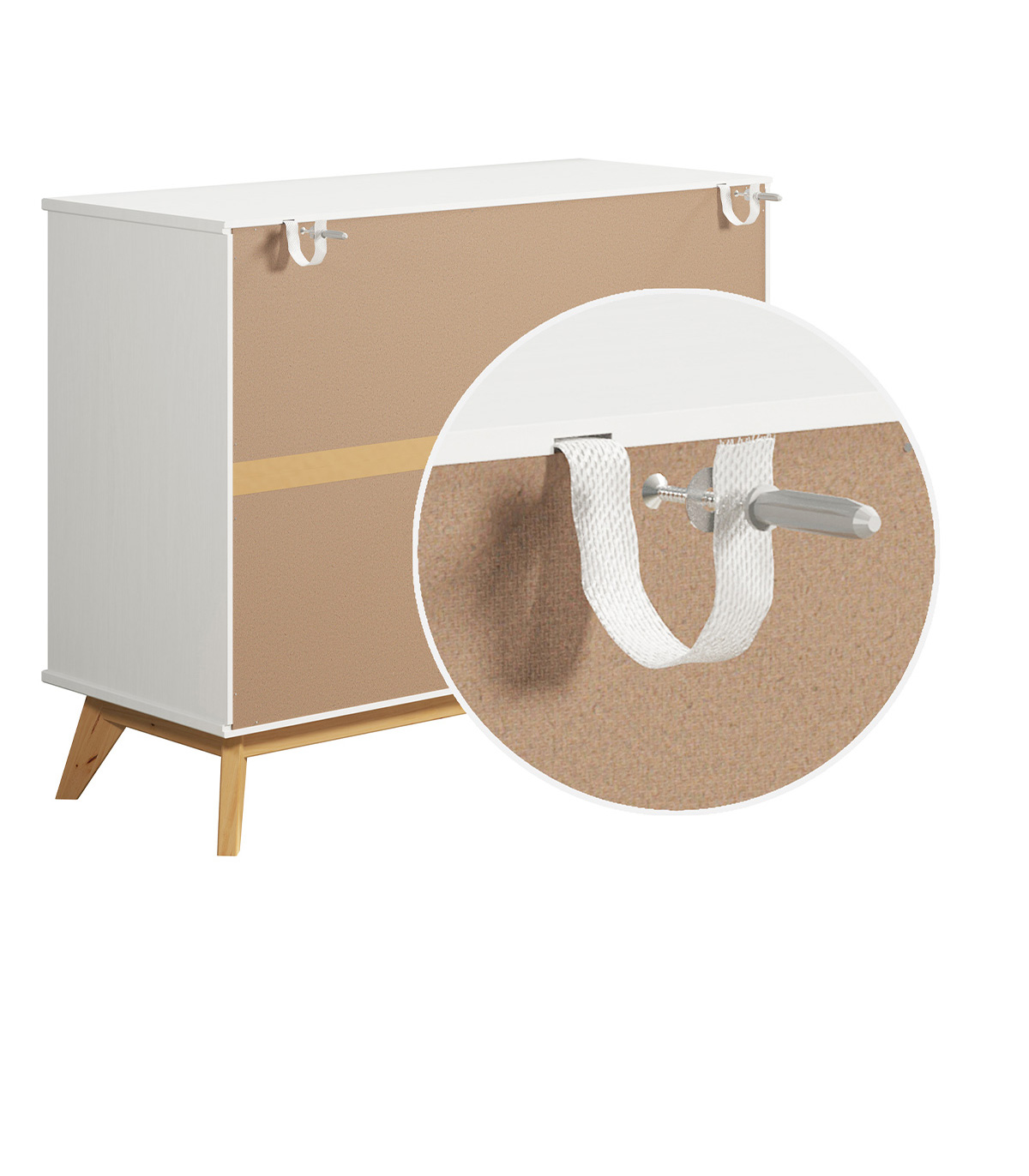 Etichete: 2 rafturi cu usa, 3 sertare, 96 x 40 x 79cm, Comoda Borneo Alb, Comode si dulapuri, lemn de pin, Mobilier living