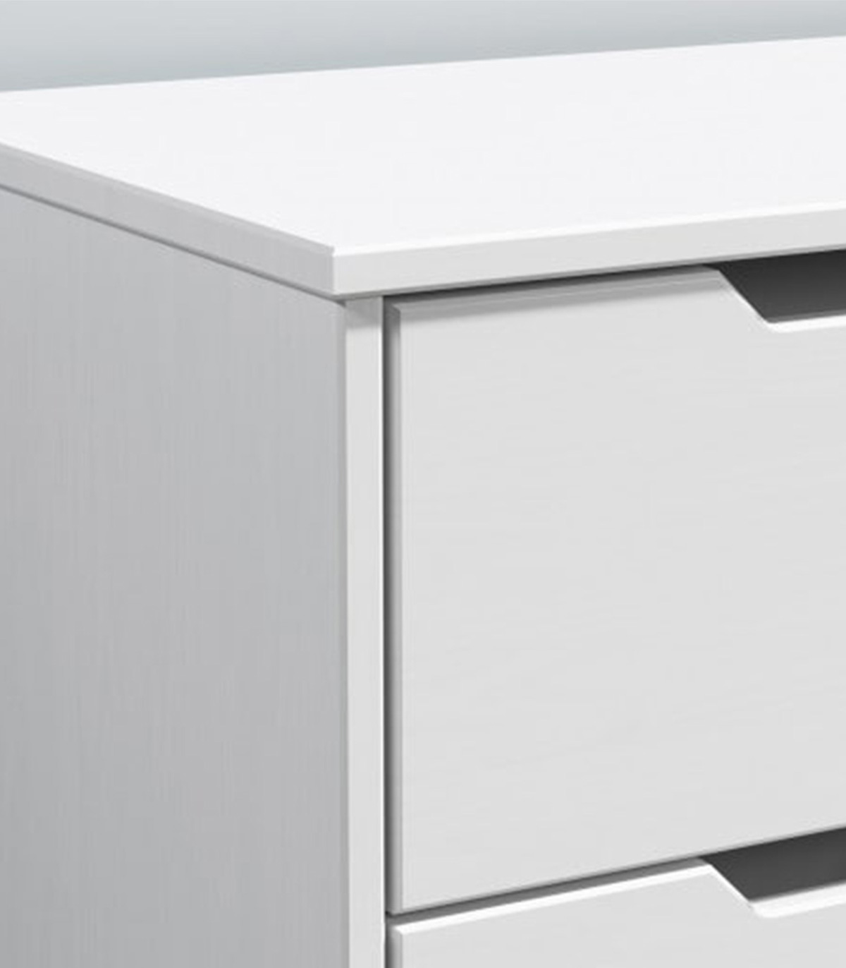 Comoda joasa Borneo Alb, 4 sertare, 2 rafturi, lemn de pin, 140 x 42 x 40 cm