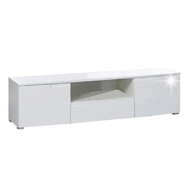 Comoda TV, 3 usi, din pal alb lucios, Spice, 165x40x42 cm