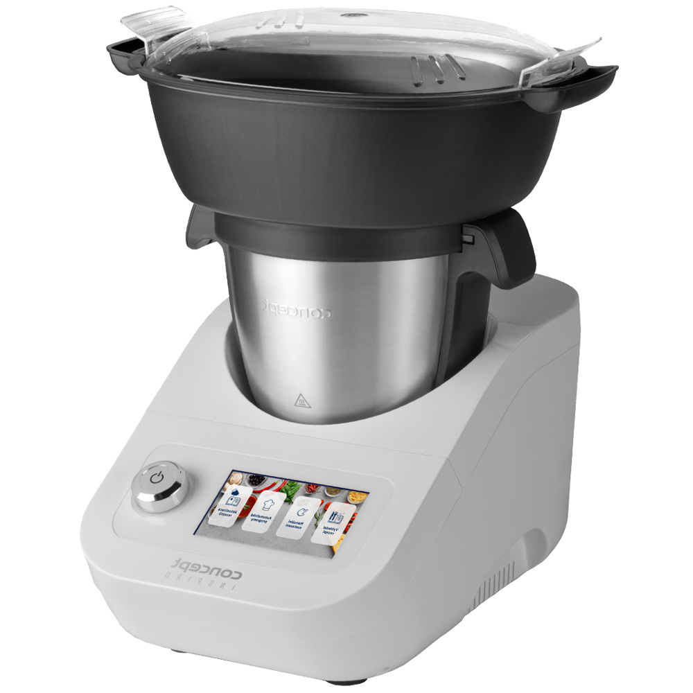 Descoperiți o nouă dimensiune a gătitului cu robotul de gătit multifuncțional Concept RM9000 Inspiro. Va face treaba mai multor aparate, astfel încât vă va economisi mult spațiu valoros în bucătărie. Îl puteți folosi ca robot de bucătărie, cuptor cu aburi, aragaz de orez, food procesor, tocător, blender, oală obișnuită sau cântar. Oferă o selecție bogată dintr-o bază de date de rețete gustoase. Vă ghidează prin întregul proces de preparare în pași simpli, astfel încât să vă puteți ocupa cu ușurință de rețete mai complexe pe care nu ați îndrăzni să le încercați înainte. Robotul de bucătărie multifuncțional INSPIRO vă va ajuta să vă îndepliniți ambițiile culinare, chiar dacă sunteți un începător complet în bucătărie.