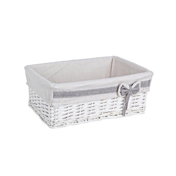 Cos decorativ rattan alb cu husa Ribbon 38 cm x 28 cm x 15 h