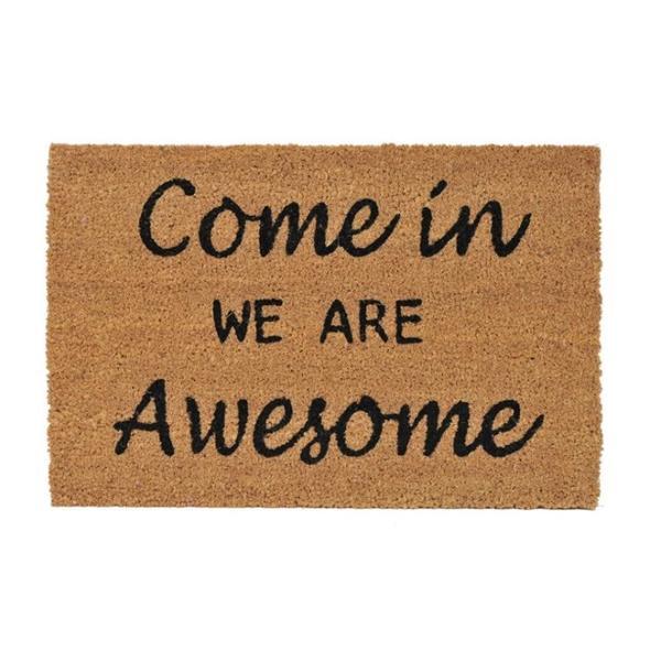 Covoras decorativ pentru intrare, model cu mesaj de intampinare, 60×40 cm, maro, Topi Toy