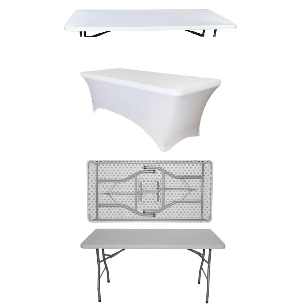 CULINARO Set masa pliabila evenimente, dreptunghiulara 152x76xh74cm, husa alba, capac elastic alb
