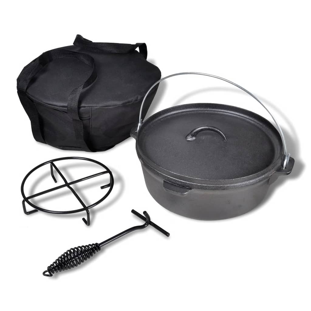 Acest cuptor olandez, cu o capacitate de 5,6 L, este un model ideal pentru începători, dar și pentru profesioniști. Cuptorul poate fi folosit pentru a face tocane, fripturi și altele. Acest cuptor olandez este livrat cu o geantă neagră de transport, un capac cu margine ridicată, un ridicător de capac și un suport. Fiind fabricat din materiale de înaltă calitate, acest cuptor olandez rezistent este deosebit de durabil. Include o geantă de transport neagră ce protejează cuptorul în timpul transportului. Acest cuptor olandez este un instrument de gătit versatil pentru utilizare acasă sau în natură și este ideal pentru gătit, copt și prăjit. Material: Fier Dimensiuni Pot: 36 x 33 x 15 cm (L x l x Î) Capacitate: 5,6 L Diametru capac: 31 cm Dimensiune suport: 20 x 5 cm (Φ x Î) Lungime ridicător capac: 25 cm Livrarea include: 1 x Cuptor olandez 1 x Ridicător de capac 1 x Suport 1 x Geantă pentru transport