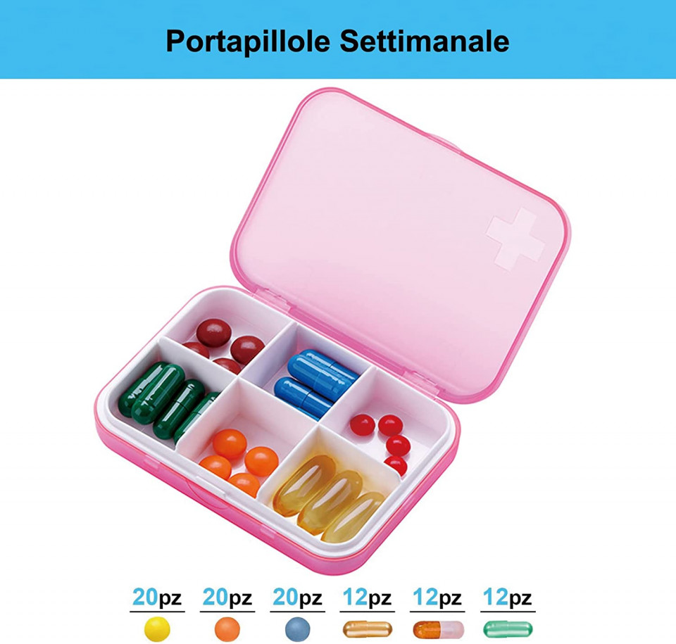 Utilizare multifuncțională: Nu este doar un recipient perfect pentru medicamente pentru pastilele tale zilnice, ci și un organizator de delicatețe pentru celelalte obiecte mici, cum ar fi cercei, ac de piept, butoni etc. Detalii: Culoare: roz/alb Material: plastic Dimensiune: 9,2 x 6,5 x 2 cm