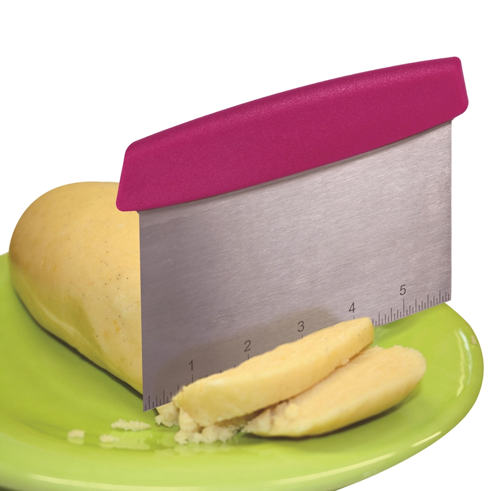 Cutitul din inox pentru taierea aluatului are lama gradata pentru o masurare si taiere perfecta. Acum aluatul pentru paine, placinte , precum si fondantul pot fi taiate rapid si usor in linie dreapta, ca un adevarat patiser profesionist. Dimensiune 11cm x 11cm Manerul este disponibil in 3 culori. Se livreaza aleatoriu in functie de stoc. Nu se poate selecta culoarea. Material : ABS (maner) + otel inoxidabil.