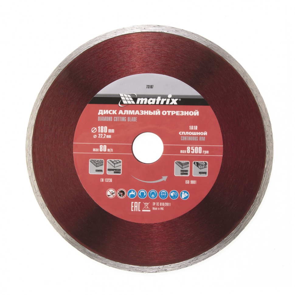 Se foloseste la taierea umeda a placilor ceramice. Resursele inalte de taiere sunt asigurate de pulberea cu diamante de dimensiuni corespunzatoare si o prindere potrivita optim. Discurile cu diametrul alezajului de 25,4 mm sunt potrivite pentru cele mai raspandite modele de masini electrice de taiat ceramica cu posibilitate de racire cu apa.