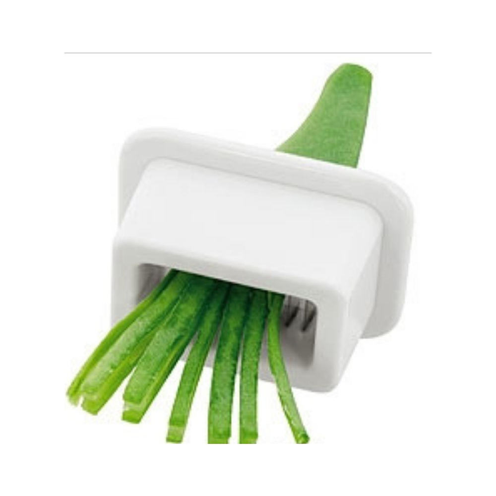 Dispozitiv taiere fasole grasa – un mic dispozitiv ce va ajuta sa taiati rapid, in fasii subtiri, pastaile de fasole grasa si sa inlaturati partile laterale ale pastaii ce au o ata, ce nu trebuie sa fie inclusa in mancarea pe care o pregatiti. Fabricata din plastic rigid si lamele de otel inoxidabil. • Dimensiuni aproximative: lungime 4.5 x inaltime 3.7 x adancime 2.6 cm.