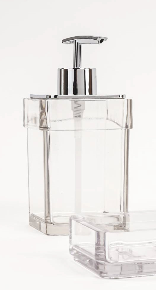 Dozator (dispenser) sapun lichid din SAN* Metaform 25 TRANSPARENT 103G59510, design modern. Accesoriile de baie din gama 25 TRANSPARENT se definesc printr-un design modern si accente originale, minimaliste. Dimensiuni: 15,5 x 8 x 8 cm Capacitate: 350 ml Garantie: 2 ani Acest produs poate fi achizitionat separat sau impreuna cu alte articole baie din gama 25 TRANSPARENT. *SAN (Acrilonitril de stiren) este un material plastic care se utilizeaza la fabricarea unor produse similare cu cele din sticla. Spre deosebire de obiectele de sticla, cele din SAN nu se vor sparge, fiind foarte rezistente la impact. SAN-ul este foarte transparent, are o suprafata lucioasa si este utilizat pentru o serie larga de produse, cum ar fi ustensile de bucatarie, lentile de lampi, rafturi magazine, piese pentru frigidere, ambalaj pentru produse cosmetice.