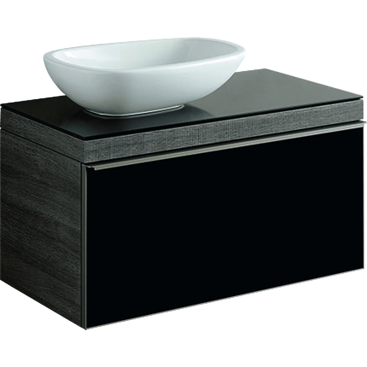 Dulap baza Geberit Citterio 88.4cm pentru lavoar tip bol un sertar sticla neagra corp stejar maro gri