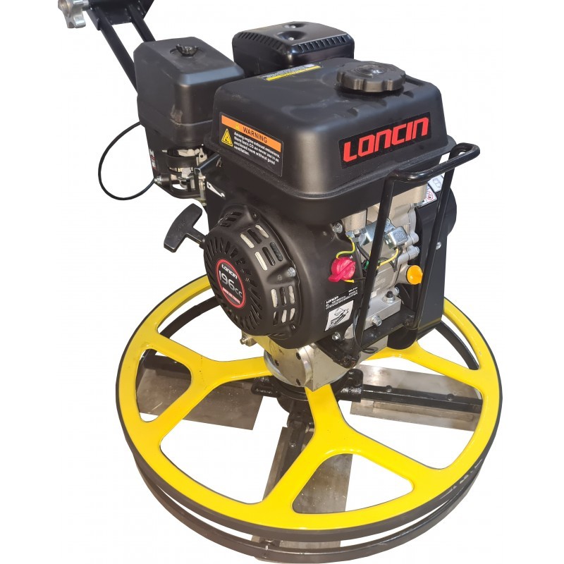 Finisor de margini STRONG MT24-2 cu diametrul 600mm echipat cu motor LONCIN G200F pe benzina in 4 timpi cu puterea de 5.5CP . Elicopterul STRONG MT24-2 este recomandat pentru finisarea pardoseli de beton si sapelor. Finisorul de beton STRONG MT24-2 este echipat cu inel de protectie lateral pentru finisare pe langa pereti. F inisorul de beton si sapa STRONG MT24-2 este un echipament pentru uz industrial . Motor termic LONCIN G200F in 4 timpi Putere motor: 5,5CP Combustibil: benzina Diametru de lucru: 600mm Lucreaza cu disc (la nivelare) si cu paleti finisori (la finisare) Sistem de oprire automata in caz de accident cu contragreutate Inel rotativ pentru glisarea pe langa pereti Special proiectat pentru lucrul pe langa pereti si stalpi Numar palete: 4 Greutate: 60kg Elicopterul marca STRONG MT24-2 este prevazut cu 4 lame finisoare, cu inel stabilizator de protectie laterala pentru a putea permite contactul cu peretele si sistem de protectie (cu contragreutate) ce permite oprirea de urgenta pentru evitarea accidentelor de munca. Elicopterul de margini STRONG MT24-2 pentru finisat beton la margini utilizeza urmatoarele consumabile: paleti finisori si discuri flotoare. Finisorul de sapa si beton STRONG cu diametrul de 600mm este echipat cu variator de turatie . Avantajul in cazul utilizarii variatorului de turatie in locul ambreiajului centrifugal (solutia clasica) este ca se poate lucra cu variatii de turatie fara a avea uzuri sau pierderi de caldura. Finisorul de beton STRONG MT24-2 este echipat cu reductor robust cu baie de ulei. Inelul de protectie se sprijina pe rulmenti cu bile pentru a evita blocarea, fata de solutia clasica cu care sunt echipate produsele similare concurente (rulmenti cu ace sau bucsi de teflon). Rulmentii pe care sprijina inelul de protectie sunt protejati la apa si praf pentru a evita blocarea acestuia. Finisorul de beton si sapa cu diametrul de 600mm din gama STRONG MT24-2 face parte din categoria de elicoptere pentru finisarea sapei si betonului cu uz industrial.