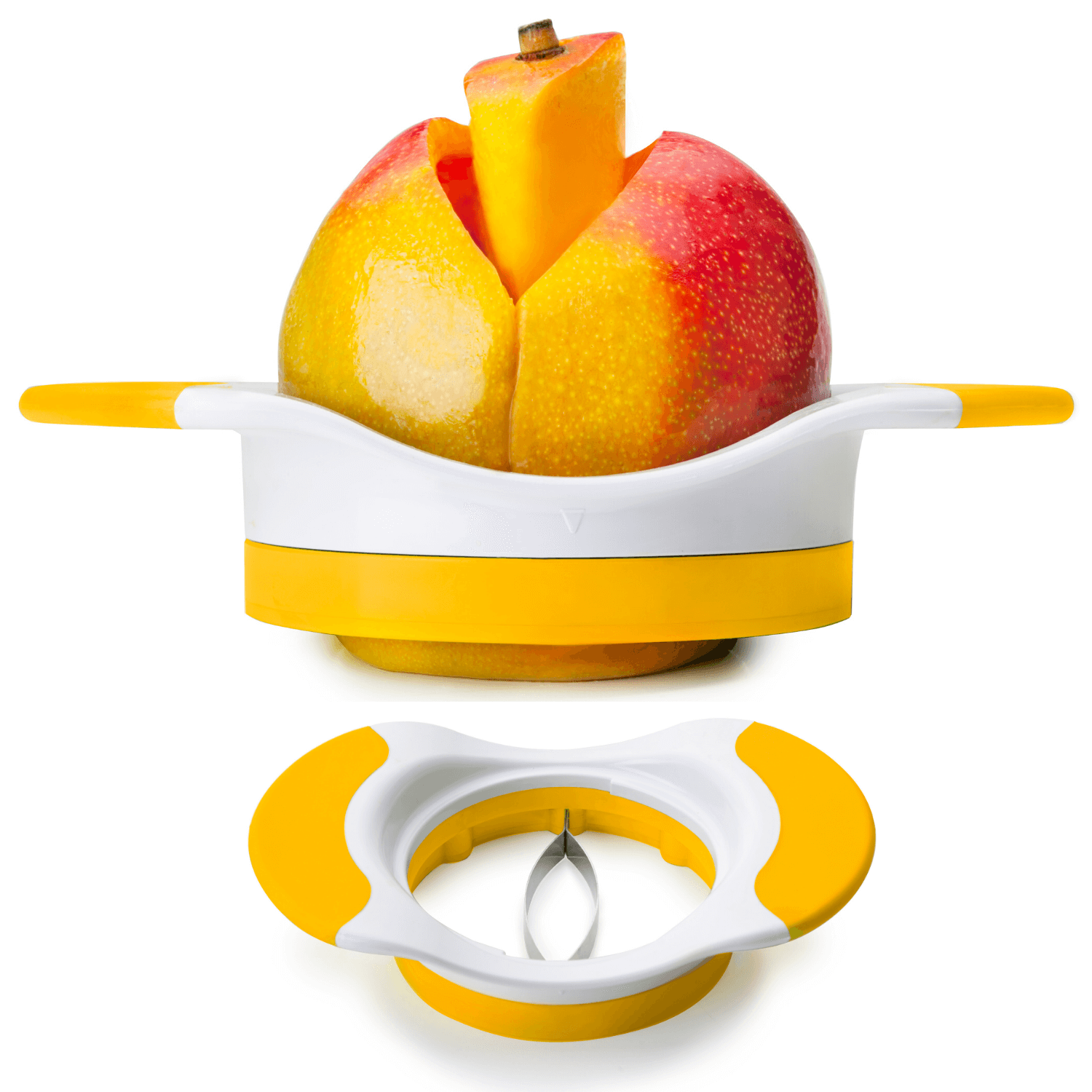 Feliator pentru mango-Ibili. Feliatorul are scheletul metalic si margin din plastic robust. Asezati feliatorul peste fructul de mango si apasat in jos. Cutitul feliatorului va taia miezul lasand in urma doar samburele fructului de mango. Dimensiuni : lungime 19 cm x latime 12 cm x inaltime 4 cm Material : otel inoxidabil si plastic