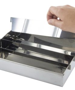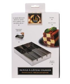 Forma inox pentru prajitura Tabla de sah este o forma dedicata pentru prajitura Battenberg, respectiv o compozitie de chec, in doua culori, asezata in patru straturi, astfel incat sa se obtina acele patratele, si sudate cu gem, pentru ca totul sa fie apoi invelit in martipan. Avand aceasta forma inox pentru prajitura Domino, va va fi foarte usor sa coaceti la cuptor compozitia. Forma este dreptunghiulara si are 4 compartimente detasabile. Aceste 4 insertii va dau posibilitatea sa adaugati compozitii de culori si texturi diferite, fara ca acestea sa se amestece intre ele. Compozitia finita va avea aspect de tabla de sah, atunci cand este taiata in felii. Dimensiuni: inaltime 4 x lungime 20 x latime 15 cm Material: otel inoxidabil.