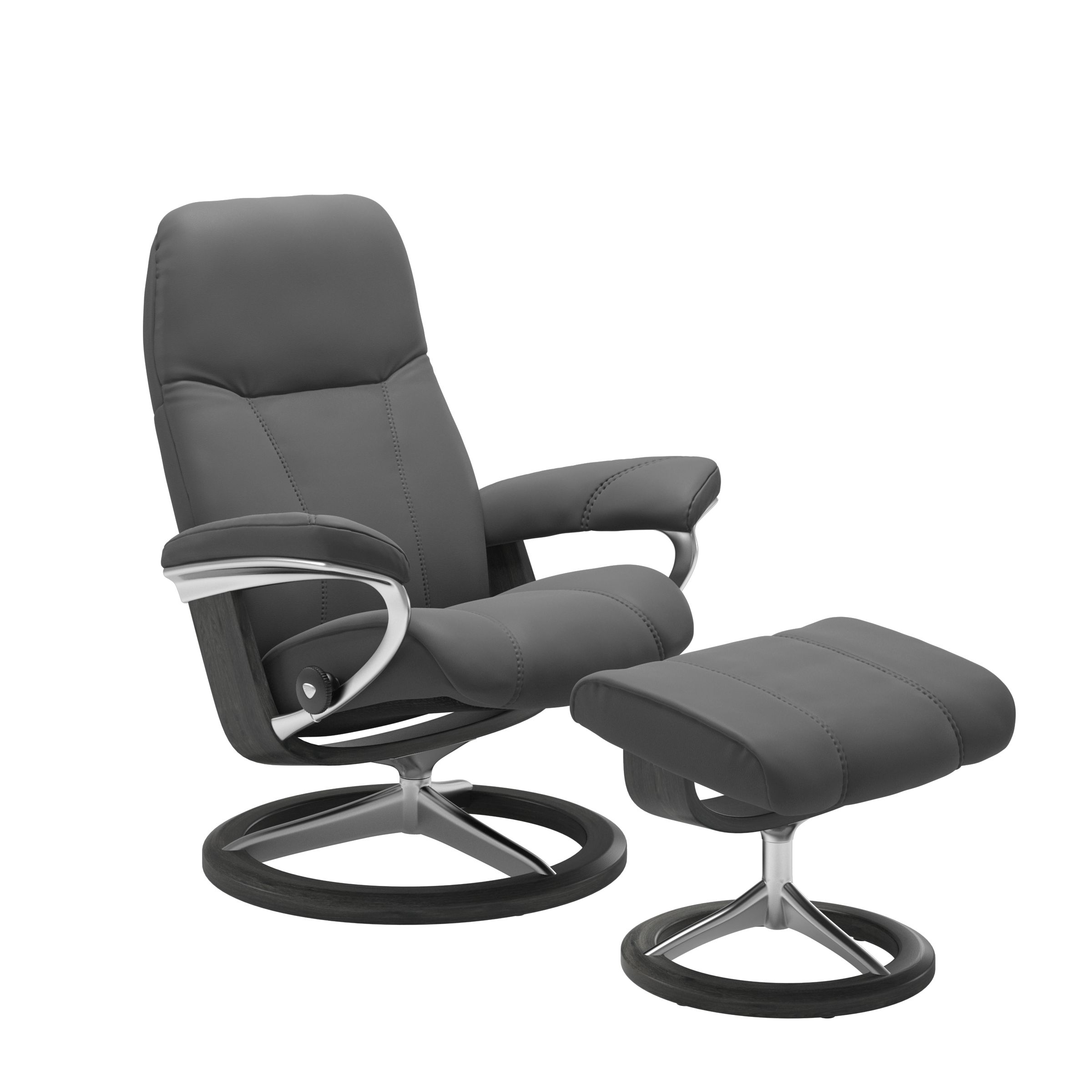 Fotoliu recliner cu taburet Stressless Consul Signature M cadru Grey tapiterie piele Batik Grey