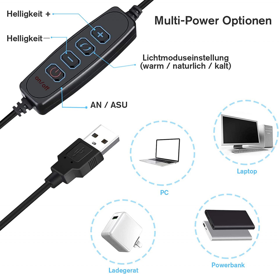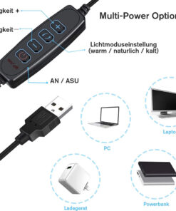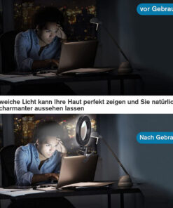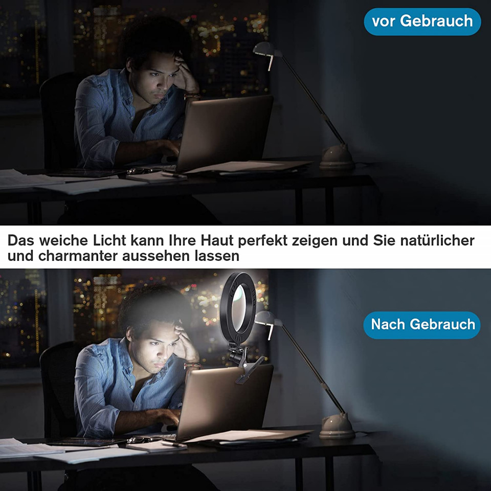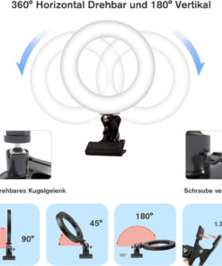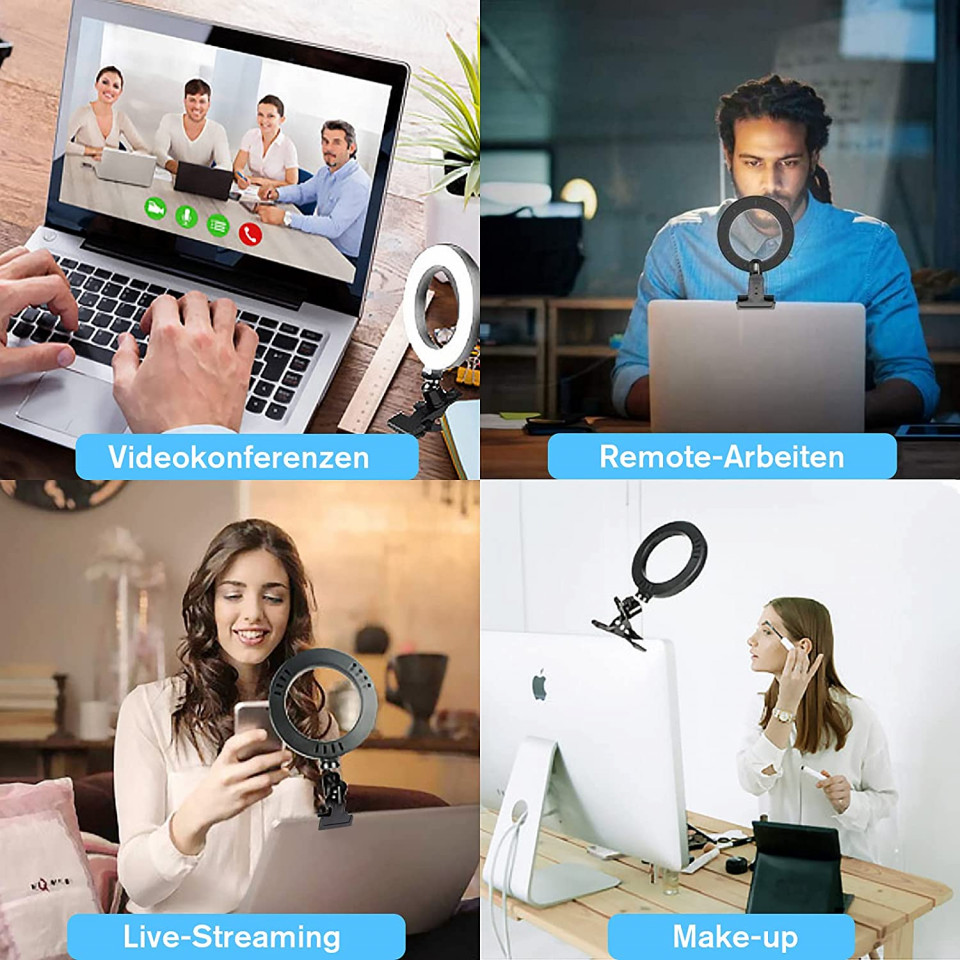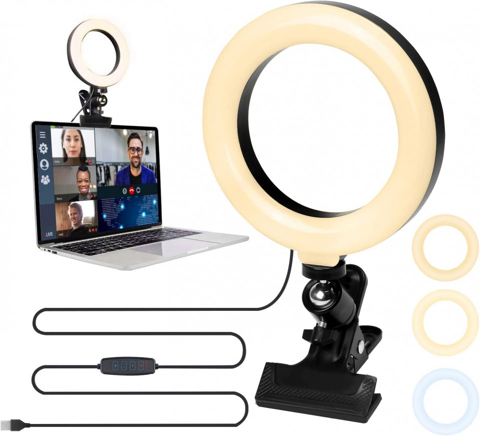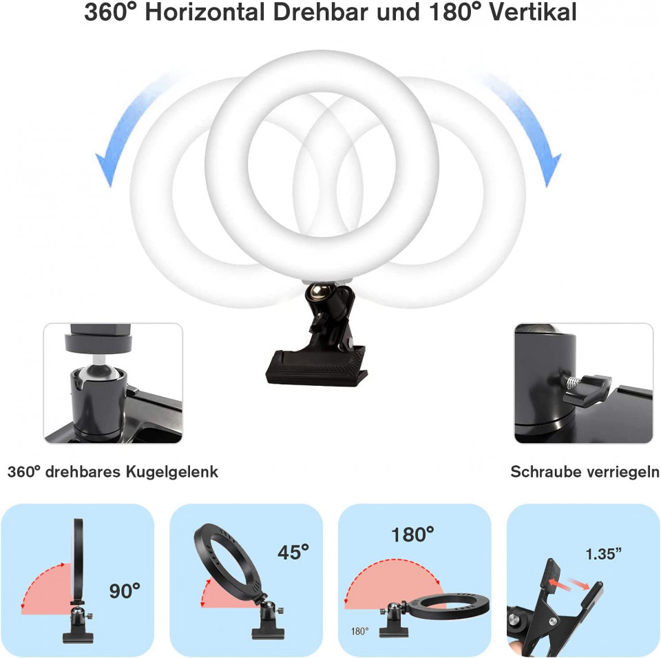 Temperatură de culoare și luminozitate reglabile: Lumina noastră pentru videoconferință are 3 temperaturi de culoare (lumină albă/lumină caldă/lumină naturală) 3000 K (caldă) – 6000 K (rece), 11 niveluri de luminozitate și 64 margele de lampă LED cu luminozitate de 10 W. Puteți ajusta cu ușurință iluminarea ideală prin intermediul comutatorului pentru a vă arăta pielea mai perfect și pentru a vă adapta mediului înconjurător. Vă oferă diferite opțiuni de iluminare și efecte excelente de înregistrare. Detalii: Lumină la nivel circular și design de rotație de 360°: Iluminarea videoconferinței de 6 inchi are un design inel, lumină plată în comparație cu alte lumini cu suprafață curbată, lumina este mai uniformă decât o lampă fixă, fără strălucire, fără umbră. Este, de asemenea, o lampă mini inel. Iluminarea pentru videoconferință are un cap bilă care se rotește la 360° care vă permite să reglați unghiul de iluminare video Alimentare USB și ușor de transportat: Mai multe opțiuni de alimentare, deoarece toate porturile USB pot fi folosite pentru a alimenta aceste lumini video clip-on, de exemplu, PC-uri desktop, laptopuri, surse de alimentare pentru mobil sau încărcătoare pentru telefoane mobile. Eficient energetic și ecologic. Culoare: negru Dimensiune: 15,2 cm