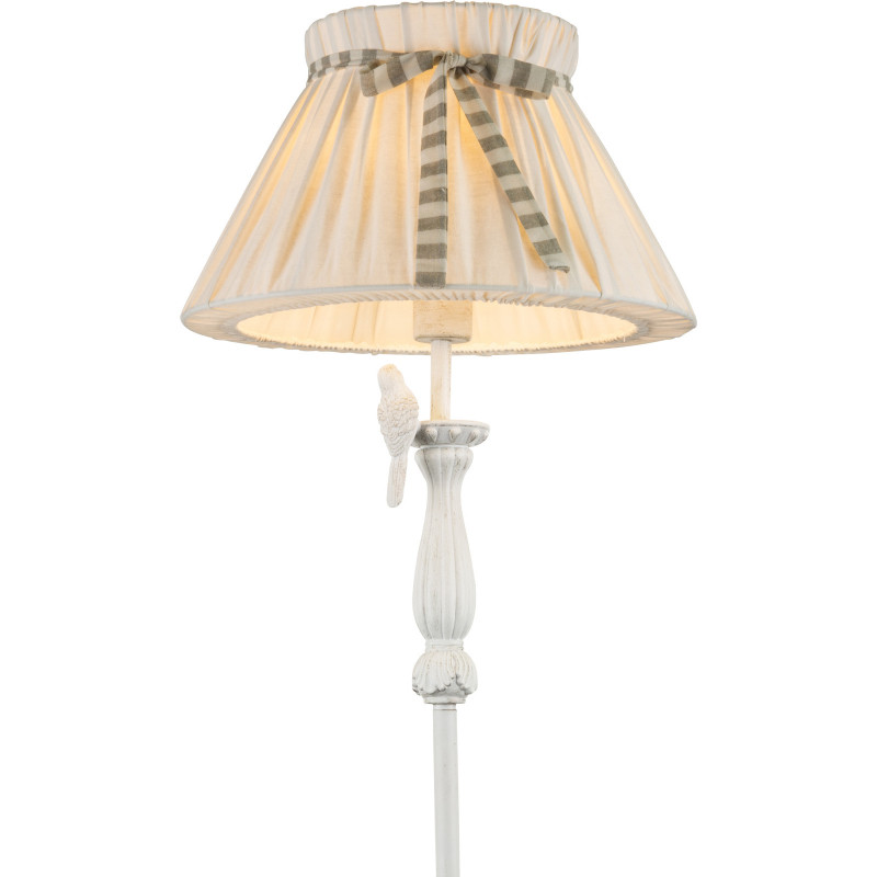 Lampadar alb patinat auriu, textil alb, cu pasăre, comutator, 1 bec, dulie E27, 69027S, Globo