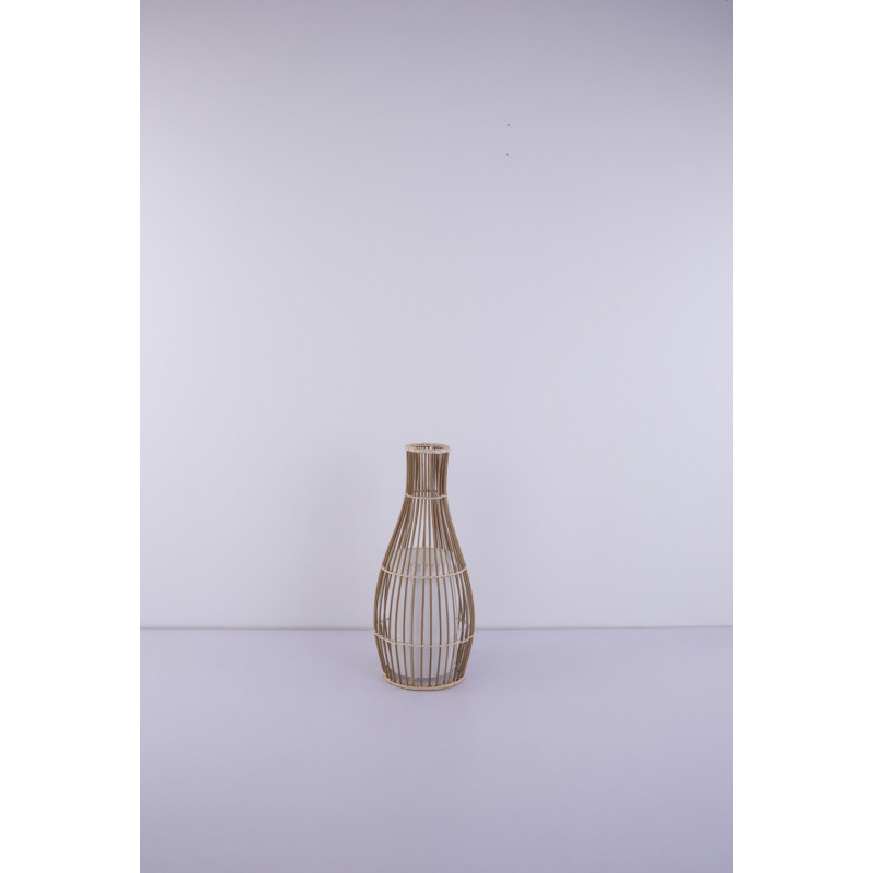 Lampadar bambus natural, textil bej, comutator, 1 bec, dulie E27, 25000T, Globo