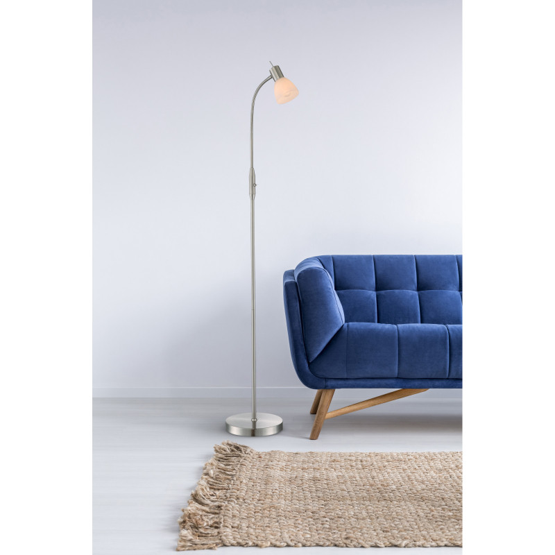 Lampadar nichel mat, sticlă albă, flexo, cablu 1,8 m, comutator, 1 bec, dulie E14, 54533-1S, Globo