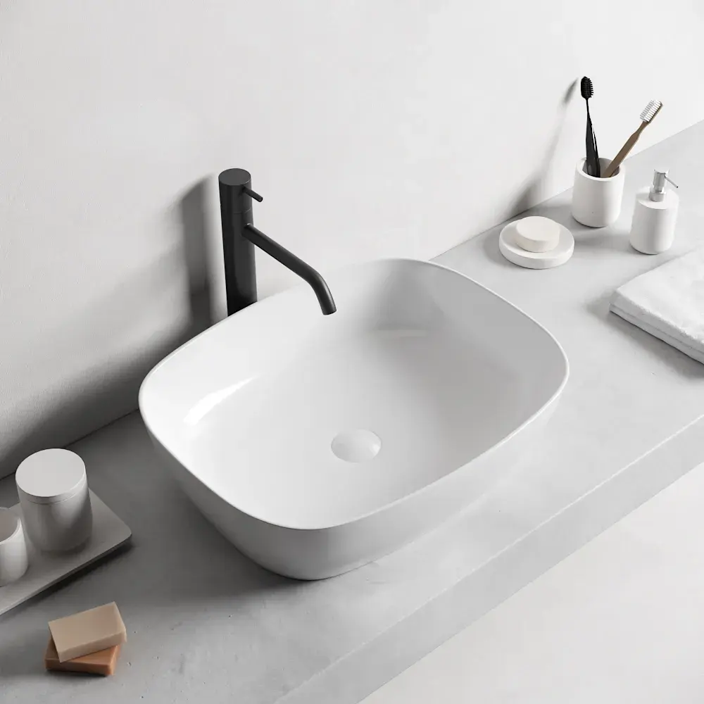 Lavoar baie pe blat, dreptunghiular margini rotunde, alb , Bristol, Foglia