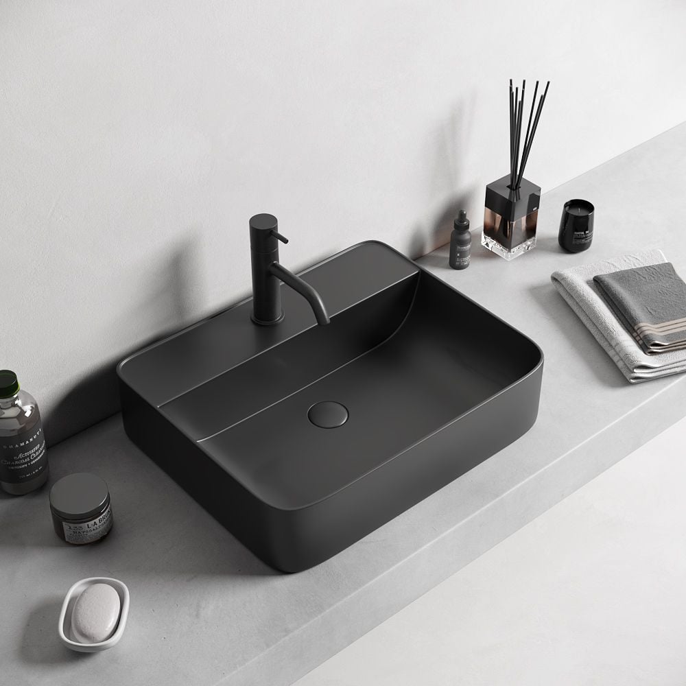 Lavoar baie pe blat, negru mat, dreptunghiular, cu orificiu baterie Foglia Golar