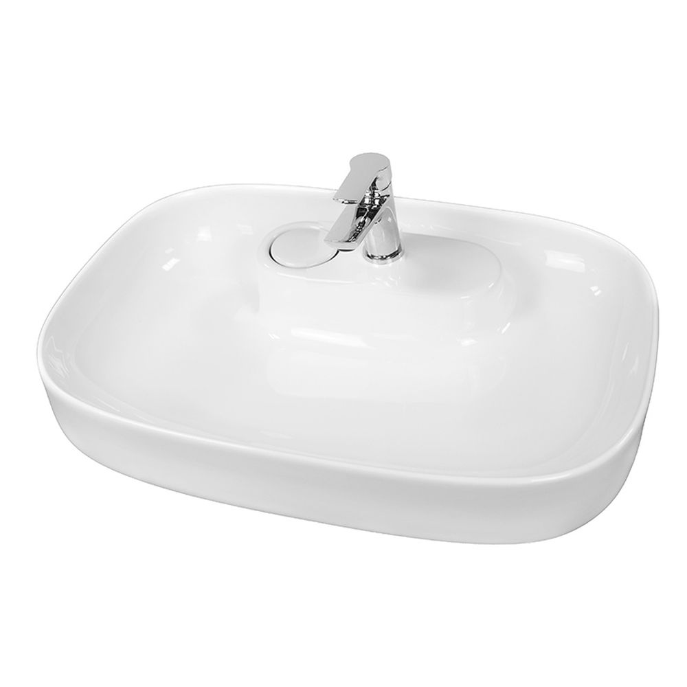 Lavoar pe blat alb lucios, dreptunghiular, 60 cm, Fluminia Pallas-V, ventil cu capac ceramic inclus