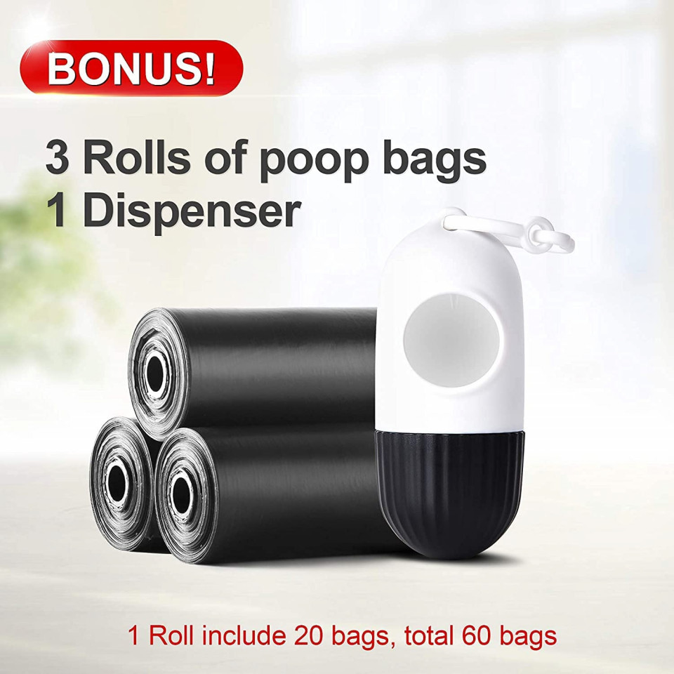 Ușor de utilizat: operare cu o singură mână. Buton de blocare rapidă, pauză și deblocare, ușor de utilizat cu degetul mare pentru a controla butonul. Excelent pentru drumeții, jogging sau alergare cu cainele tau. Detalii: Culoare: albastru Material: plastic Dimensiune: 18,5 x 12 x 3 cm Lungime: 5 m Include si 3 role cu saci menajeri