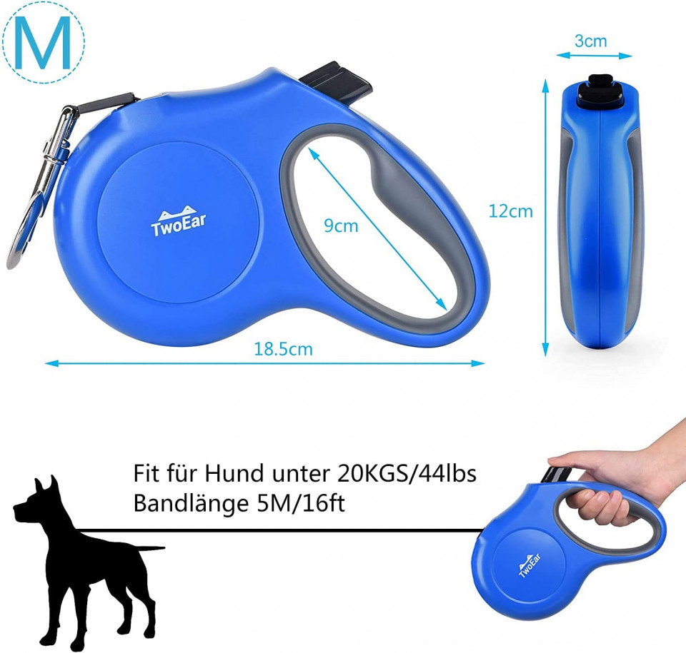 Etichete: 18, 5 x 12 x 3 cm, Accesorii pentru casă, albastru, Animale de companie, Lesa pentru caine TwoEar, plastic