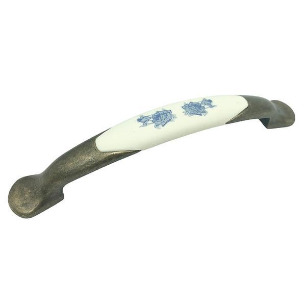Maner pentru mobila cu insertie rasina floare albastra, finisaj bronz oxidat, 128 mm – Malle