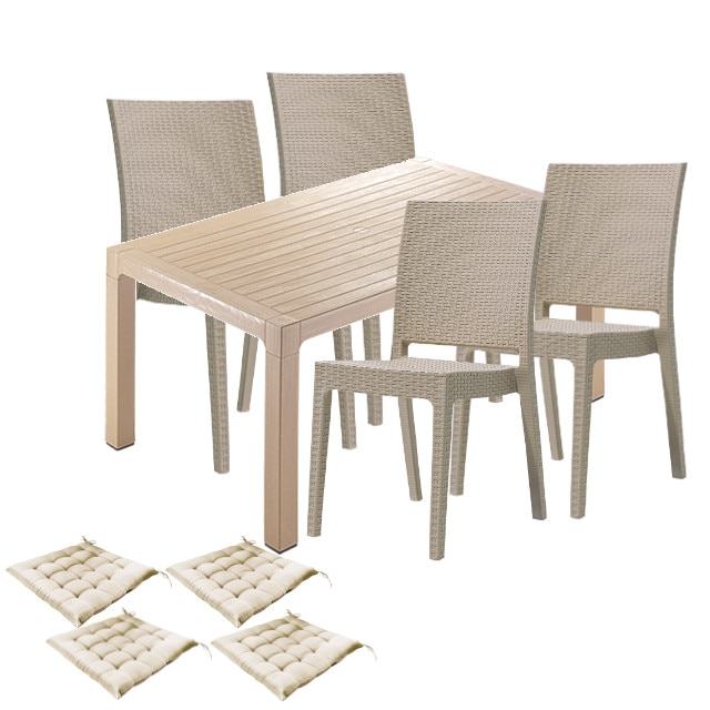 Mobila exterior CULINARO LIHULU, masa 90x150x75cm, 4 scaune 59x44xH88cm polipropilena/fibra sticla culoare cappuccino, 4 perne scaun