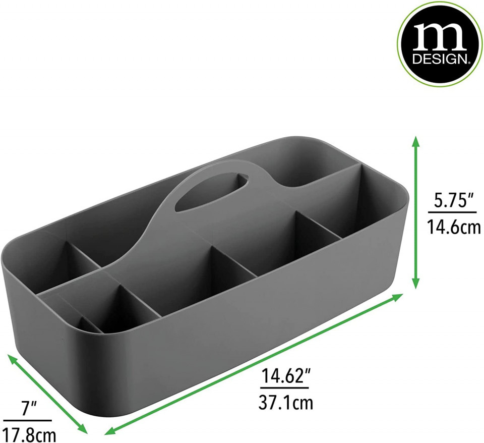 Organizator pentru baie mDesign, plastic, gri, 37,1 x 17,8 x 14,6 cm