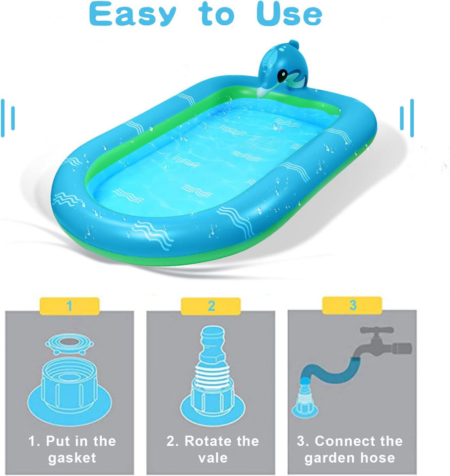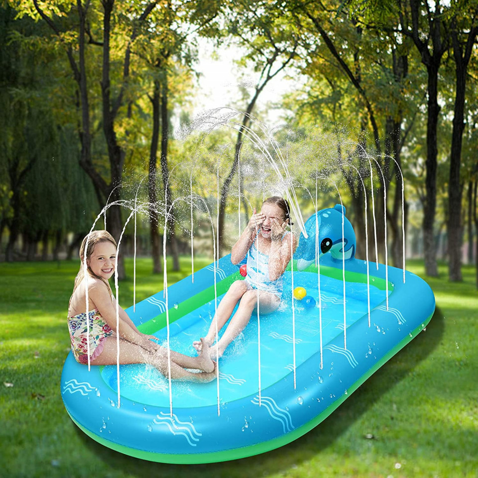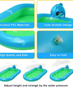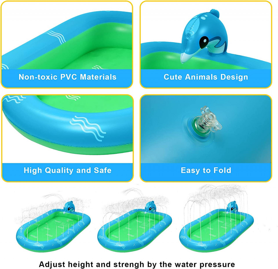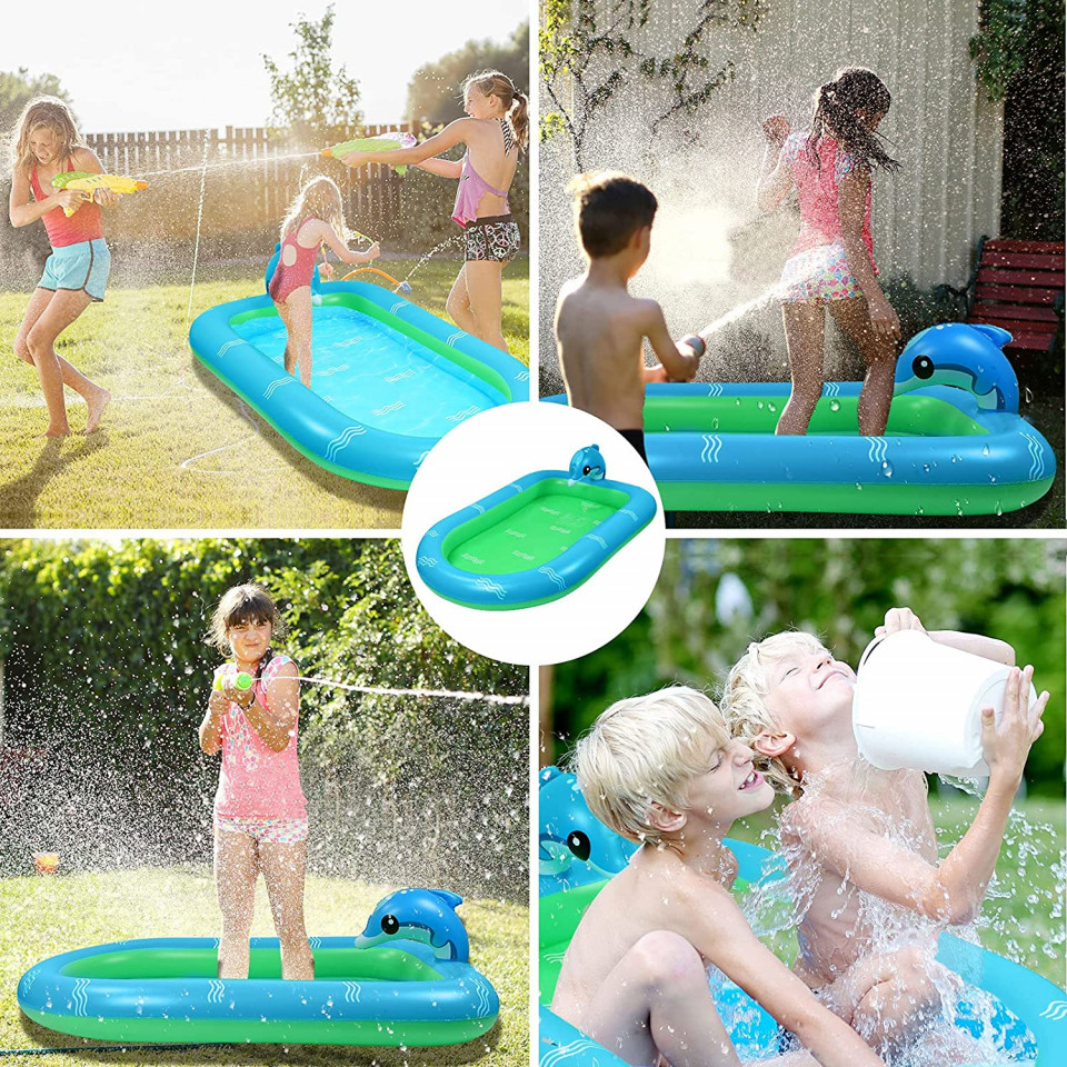 Etichete: 101 x 167 cm, Accesorii de grădină, Decorațiuni pentru grădină & terasă, Piscina pentru copii cu stropitoare Ekkong, PVC, verde/albastru