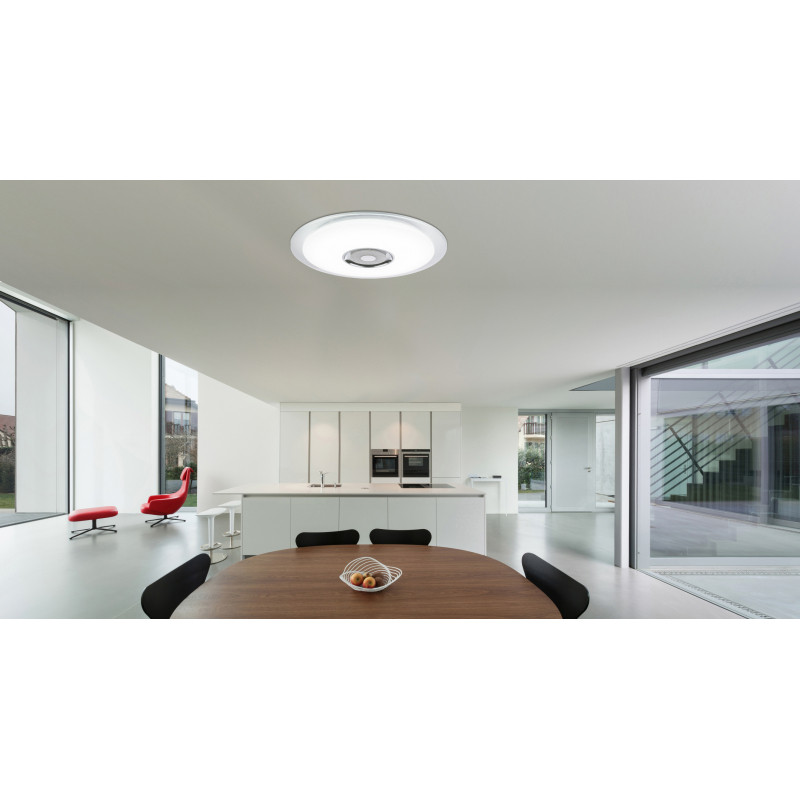 Plafoniera metalică albă, crom, cristale K5, cu telecomanda, 2300lm, temperatura de culoare ajustabila 3.000-4500 -6000K, 41341-36, Globo