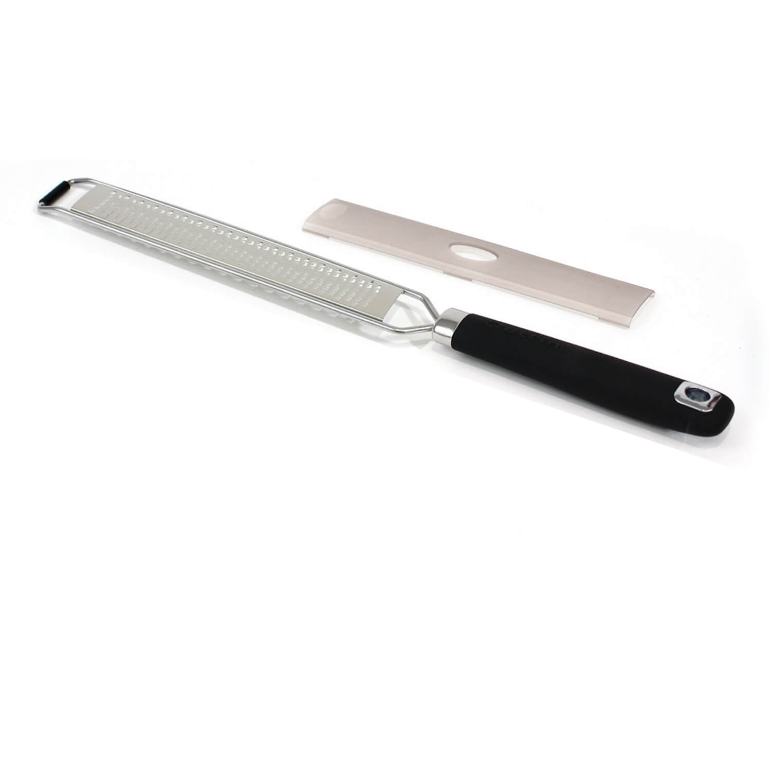 Razatoare fina Quttin 17,5 cm – model B. Razatoare fina verticala cu maner ergonomic si orificiu de agatare pe bara de ustensile.. Capatul razatorii are strat antialunecare astfel incat veti putea sa o folositi in pozitie verticala fara sa alunece pe farfurie. Dimensiuni : 17.5 x 2.6cm Material : otel inoxidabil