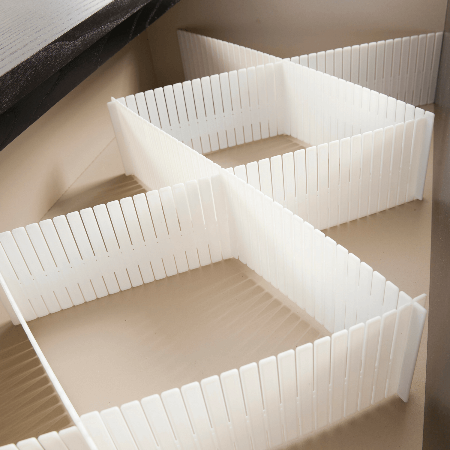Iata un separator ce va ajuta in organizarea si compartimentarea sertarelor. Decupati cele 12 placi si intercalati-le astfel incat sa obtineti compartimentarea dorita. Set de 12 placi. Dimensiuni; 44 cm x 10 cm (fiecare placa) Maerial : polipropilena rigida alba