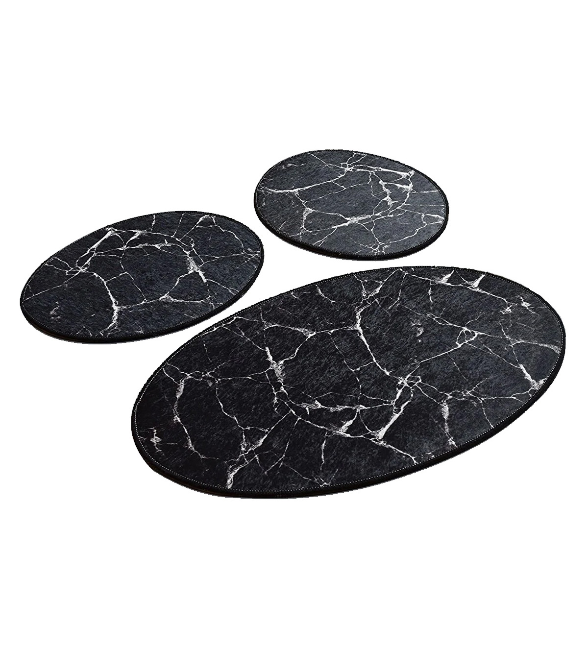 Set 3 Covorase baie Marble, 60 x 100 cm, 50 x 60 cm, Antiderapant, Negru