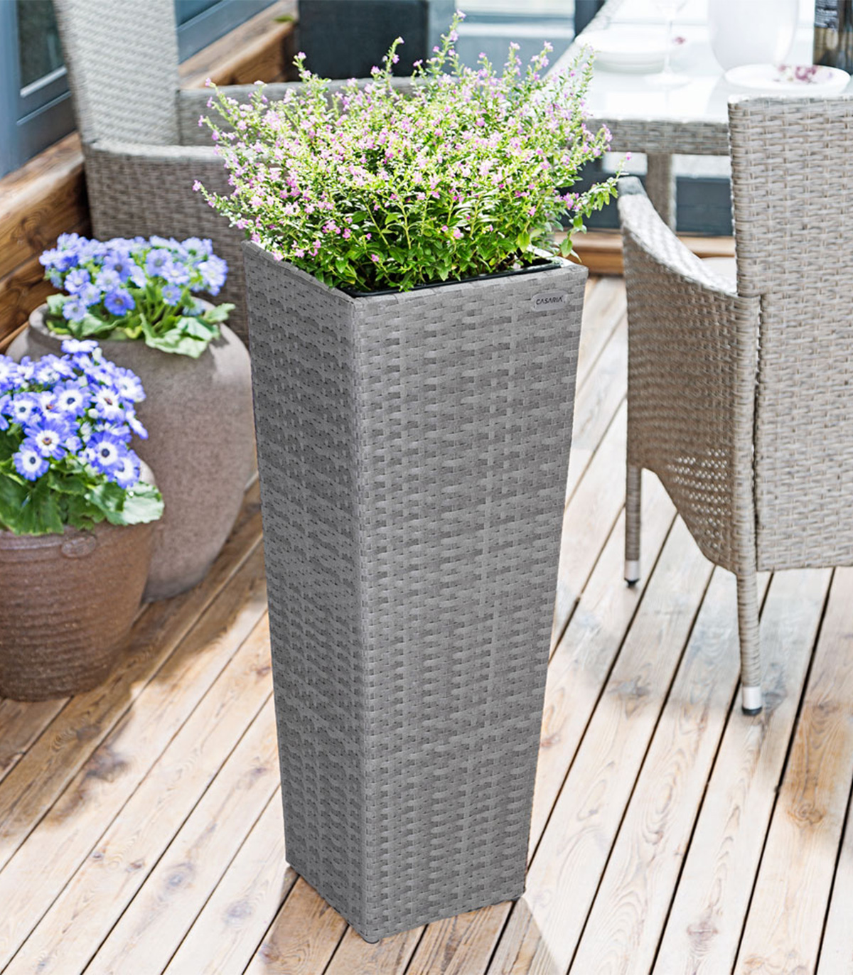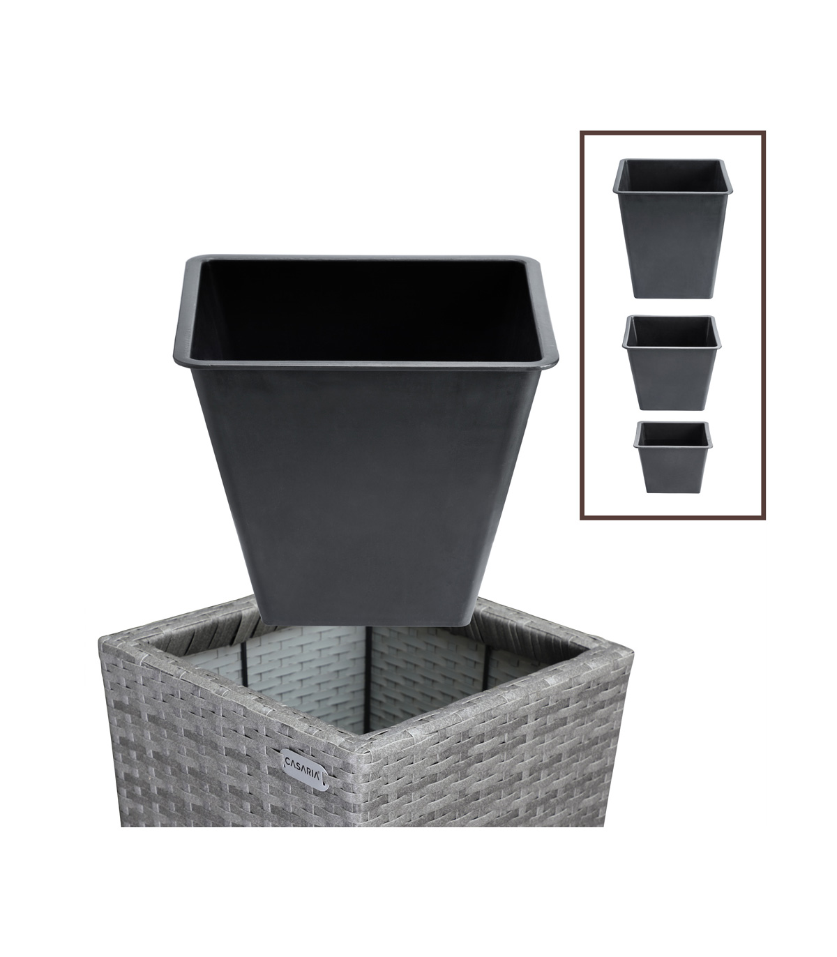Etichete: Ghivece flori, Ghivece si suporturi flori, gri, poliratan, Set 3 x Ghiveci gradina
