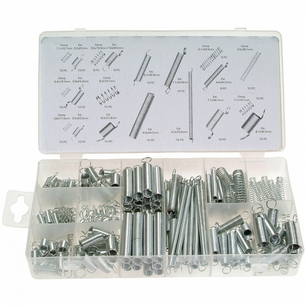 Caracteristici: Set de 200 de arcuri ce vin intr-o trusa compartimentata Setul de livrare include: 12 arcuri de tractiune, dimensiuni: O4 x 79.5 mm 8 arcuri de tractiune, dimensiuni: O4.5 x 44.5 mm 10 arcuri de tractiune, dimensiuni: O5 x 20.5 mm 10 arcuri de tractiune, dimensiuni: O5.5 x 25.5 mm 10 arcuri de tractiune, dimensiuni: O6.5 x 22 mm 10 arcuri de tractiune, dimensiuni: O7 x 38 mm 12 arcuri de tractiune, dimensiuni: O7 x 51 mm 8 arcuri de tractiune, dimensiuni: O8 x 28.5 mm 10 arcuri de tractiune, dimensiuni: O8 x 31.5 mm 12 arcuri de tractiune, dimensiuni: O8 x 44.5 mm 10 arcuri de tractiune, dimensiuni: O8.5 x 36.5 mm 12 arcuri de tractiune, dimensiuni: O8.5 x 47 mm 10 arcuri de compresie, dimensiuni: O5.5 x 17 mm 10 arcuri de compresie, dimensiuni: O5.5 x 38 mm 10 arcuri de compresie, dimensiuni: O6.5 x 10 mm 10 arcuri de compresie, dimensiuni: O7 x 12.5 mm 10 arcuri de compresie, dimensiuni: O7 x 19 mm 8 arcuri de compresie, dimensiuni: O9 x 35 mm 6 arcuri de compresie, dimensiuni: O9.5 x 16 mm 12 arcuri de compresie, dimensiuni: O9.5 x 19 mm