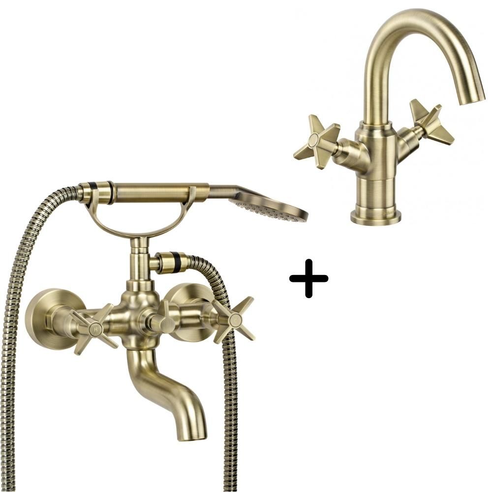 Set baterie cada culoare bronz si baterie lavoar cu ventil click-clack Deante, Temisto