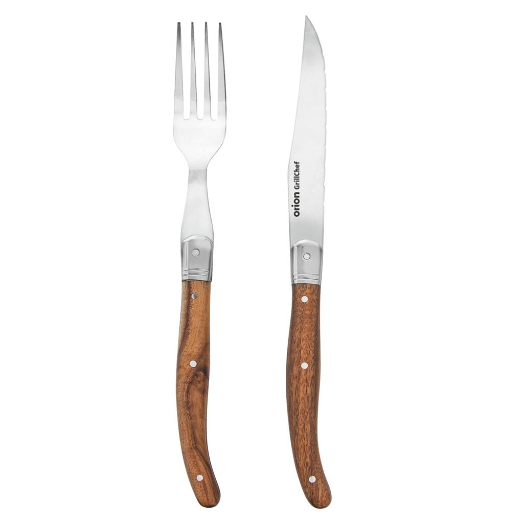 Etichete: branza, Bucataria Ta, Cutite, oua, Paste, Set cutit si furculita pentru friptura maner lemn, ustensile preparare carne