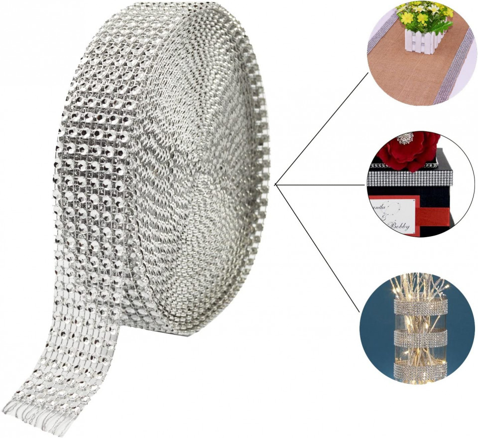 Presărați și panglica de diamant arilic glamour pentru a crea o scenă elegantă și frumoasa pentru nunta sau petrecerea dvs. Detalii: Culoare: argintiu Material: plastic Dimensiune: 3 x 900 cm