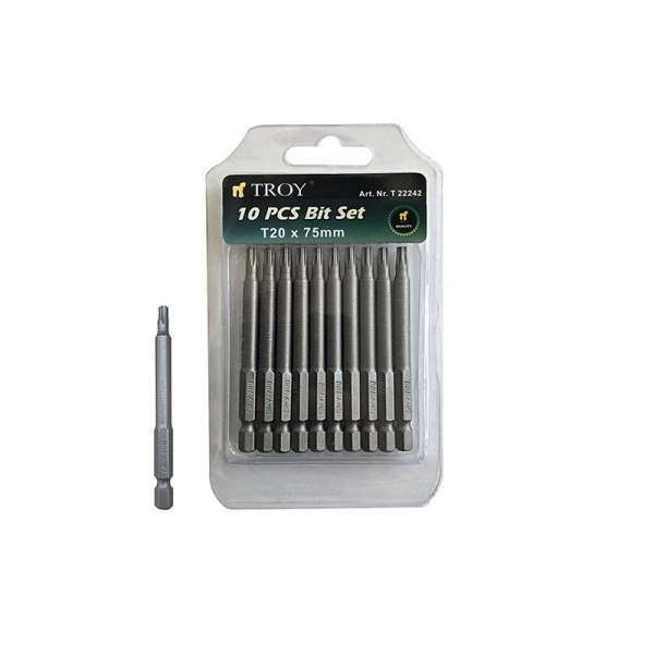 Etichete: 10 bucati, 75 mm, casaidea.ro/, Scule de Mana, Set Biti, Set de biti torx Cr-V Troy T22242, T20, TROY