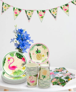 Aceasta este o veselă unică cu flamingo, farfuriile și șervețelele cu modele de ananas și flamingo sunt perfecte pentru petreceri de naștere și orice petrecere. Detalii: Setul contine: 20 farfurii (9 inchi), 20 farfurii (7 inch), 20 servetele Material: hartie Culoare: multicolor